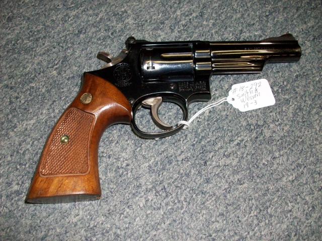 This .357 MAGNUM is a Pinned and recessed S&W mod. 19-3 with a 4" barrel. Great case colors on hammer and trigger. Chip out of one of the grips. Condition 98%. $1295.00. rmgrigoletto@yahoo.com 732 280 8750. |