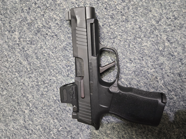 This 9mm pistol is a Sig Sauer 365 XL with a $399.99 Holosun sight. Comes in Sig hard case. Condition 100%. $800.00. rmgrigoletto@yahoo.com 732 859 6066.