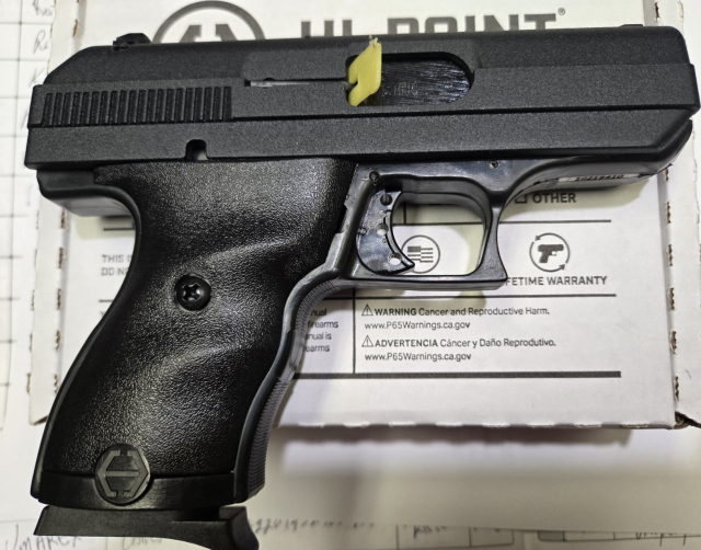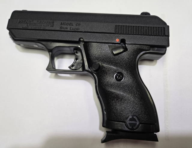 This NEW IN THE BOX 9mm. Cal. pistol is a High Point model C9. Striker fired, polymer frame, 3 dot sights & a 3.5" barrel. $175.00. rmgrigoletto@yahoo.com 732 859 6066.