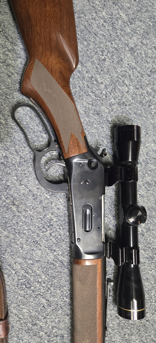 This 30-30 rifle is a Winchester model 94AE (Angle Eject). Scope is a Leup[old 4 power. See thru mounts. Crisp checkering. Schnabel Forend. Condition 99.9%. rmgrigoletto@yahoo.com 732 859 6066. $1250.00