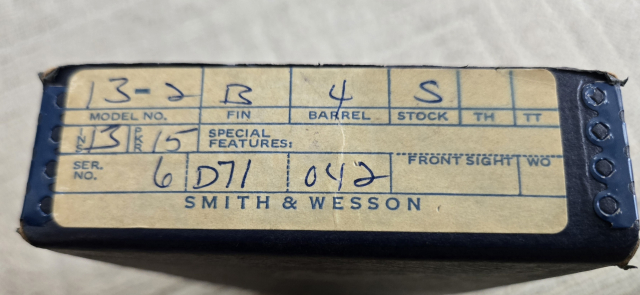 This .357 Magnum revolver is a Smith & Wesson Model 13-2 with a 4" barrel. Comes with box. Condition 99%. $850.00. rmgrigoletto@yahoo.com 732 859 6066.