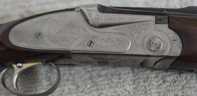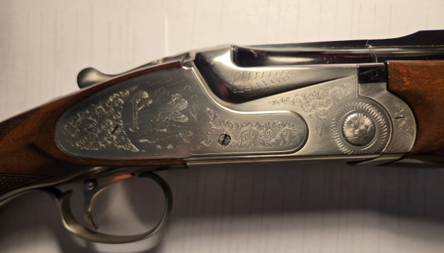 Tjhis 12 ga. shotgun is a SKB TRAO model with ENGTAVED side plate receiver. 30 " VENT RIB PORTED barrels with extended screw-in-chokes. ADJUSTABLE BUTT pad. Condition(Not a Mark on it) except chip on the underside of forearm. Great looking great shooting gun. $1300.00. rmgrigoletto@yahoo.com 732 859 6066. |